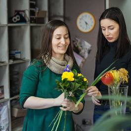 В нашей студии Вы можете пройти курсы по флористике и мастер-классы. Обучение флористике проходит в Ярославле, Москве и других городах России. Мы научим Вас работать с живыми цветами, декором и создавать красивые гармоничные композиции, букеты и оформления. Обучаем флористике с 2010 года и успешно выпустили уже более 200 учеников.